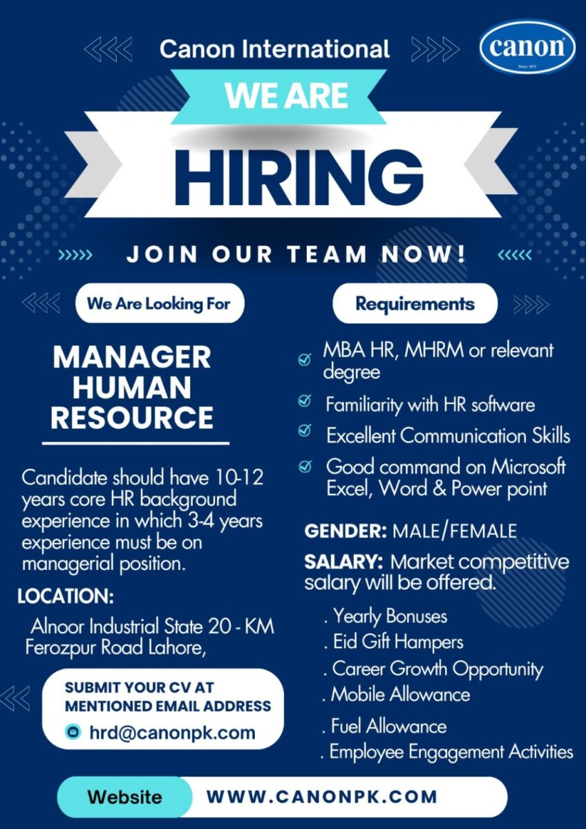 Candidate should have 10-12 years core HR background experience in which 3-4 years experience must be on managerial position.