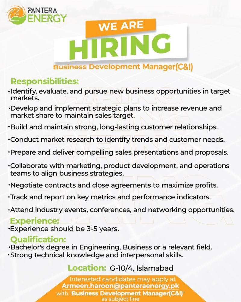 We’re hiring for the position of Business Development Manager (C&I) at Pakistan’s leading solar solutions brand!