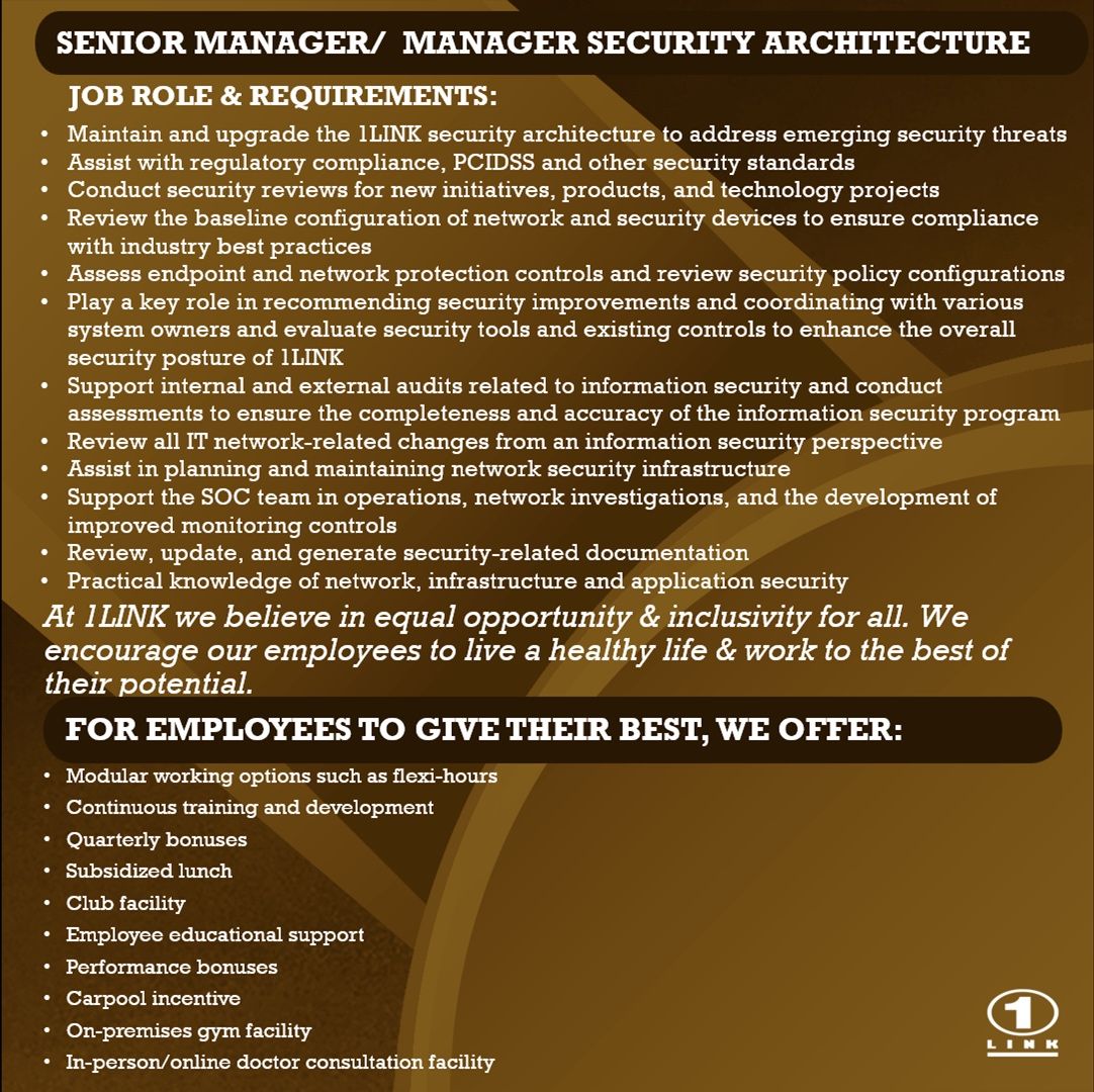 1Link Pvt Ltd Jobs Senior Manager / Manager Security Architecture