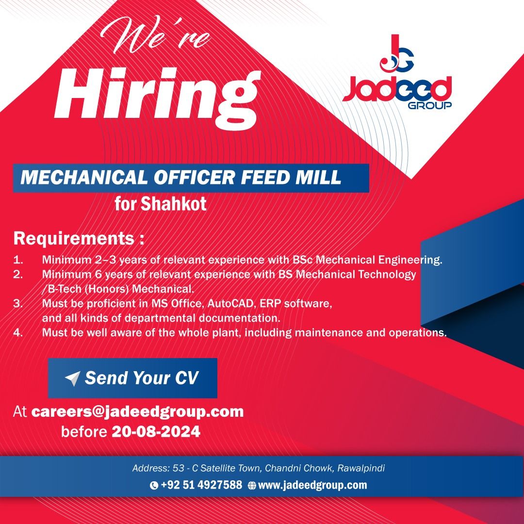 Jadeed Group is looking for a skilled 𝗠𝗲𝗰𝗵𝗮𝗻𝗶𝗰𝗮𝗹 𝗢𝗳𝗳𝗶𝗰𝗲𝗿 with expertise in Mechanical Engineering or Mechanical Technology. If you have hands-on experience in plant maintenance, operations, and proficiency in MS Office, AutoCAD, and ERP software, we want to hear from you!
