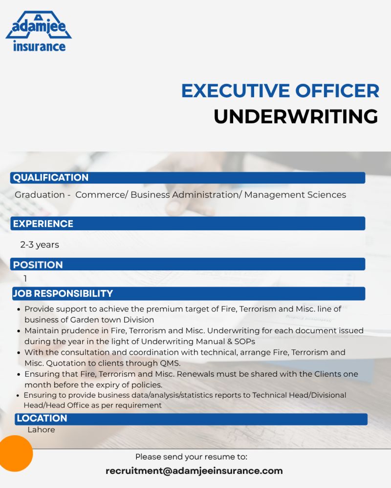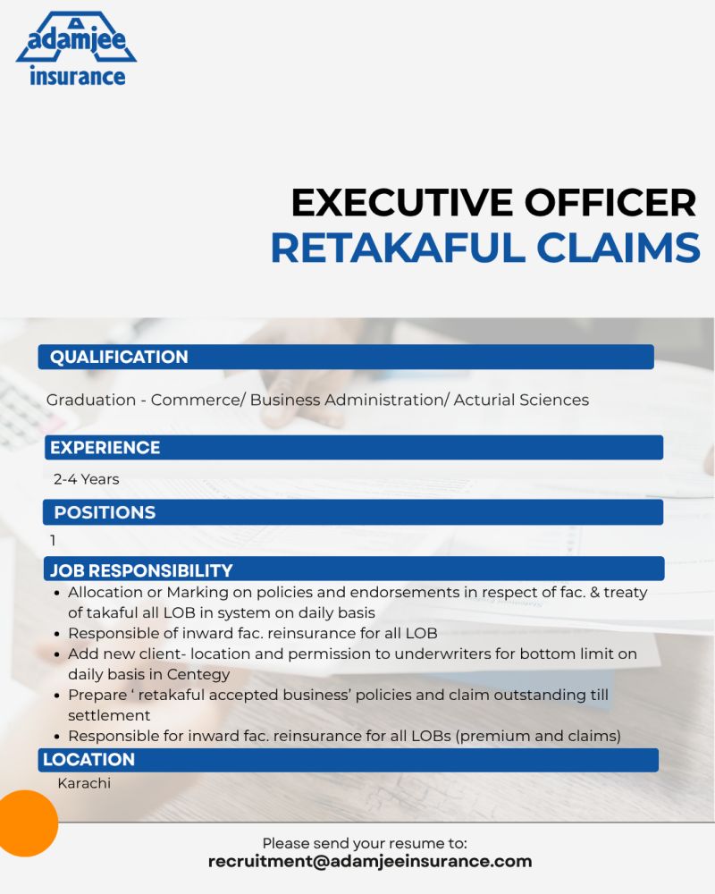 Position : EXECUTIVE OFFICER RETAKAFUL CLAIMS
