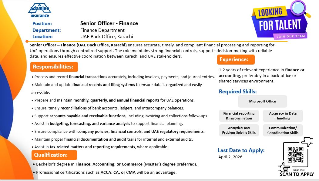 Adamjee Insurance Company Limited Jobs Senior Officer Finance  1