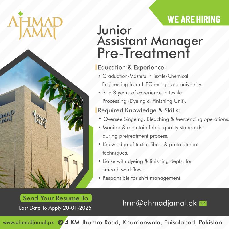 Ahmad Jamal Textile Industries Jobs Jr Assistant Manager Pre Treatment