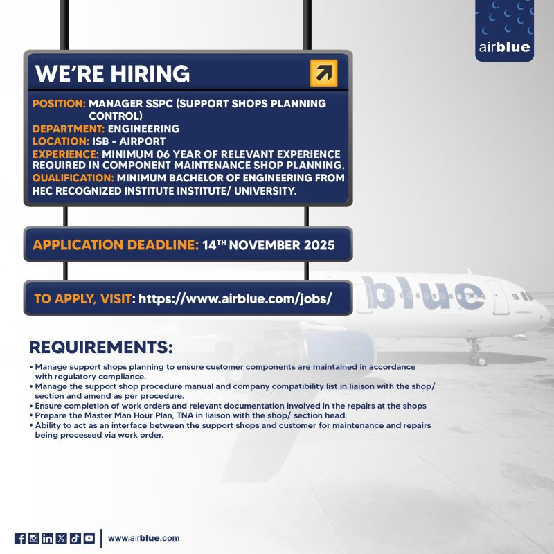 Airblue Pakistan Jobs Manager SSPC: