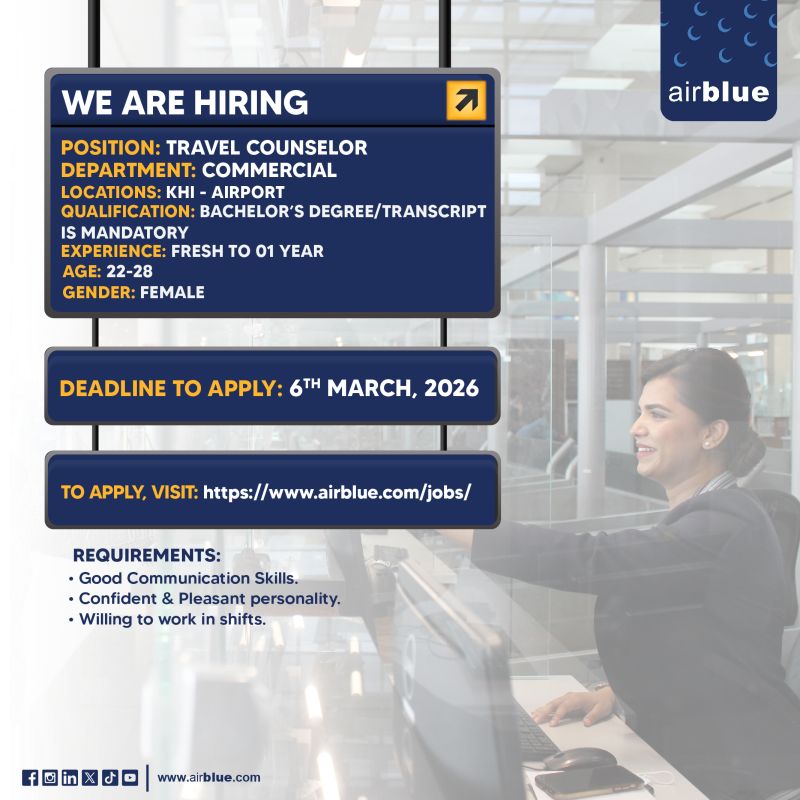 TO APPLY, VISIT: https://www.airblue.com/jobs/
