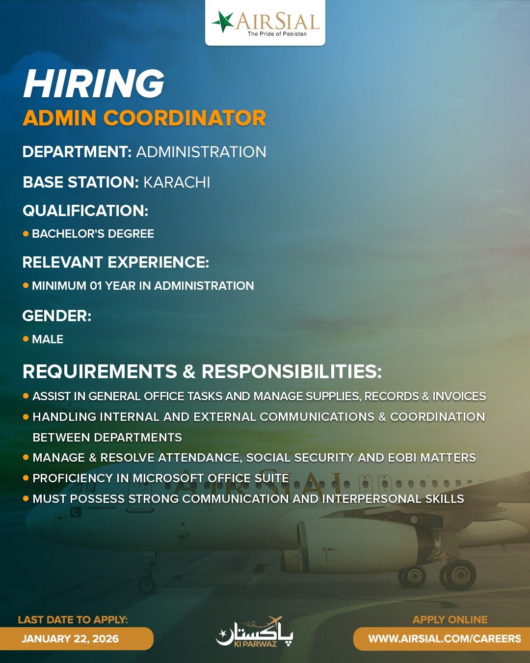 AirSial Limited Jobs Admin Coordinator