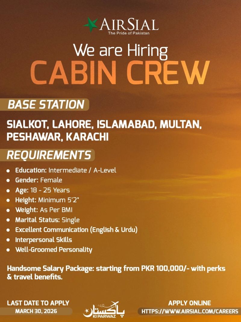 AirSial Limited Jobs Cabin Crew: