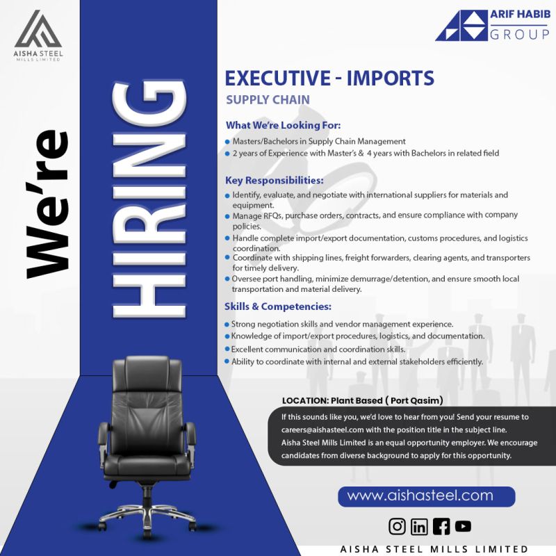 Aisha Steel Mills Limited Jobs Executive Imports: