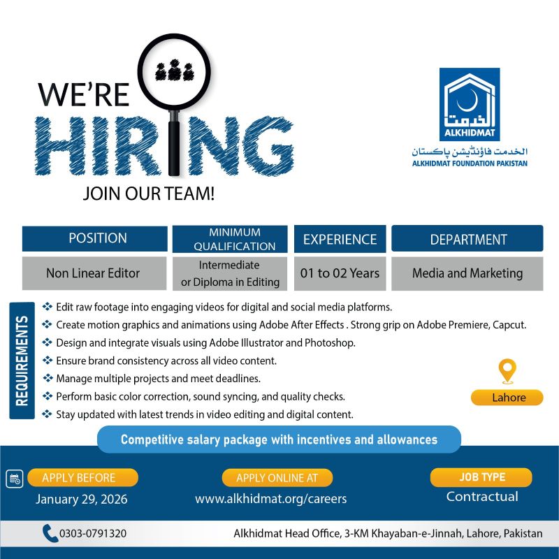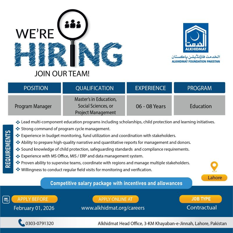 - How to Apply: Apply online at www.alkhidmat.org/careers.