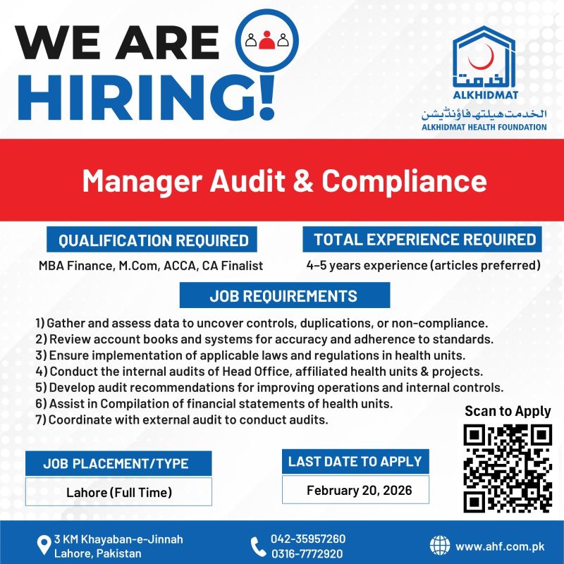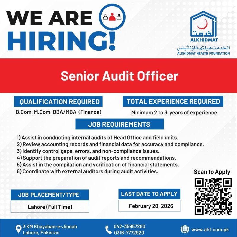 Alkhidmat Health Foundation Jobs February 2026: