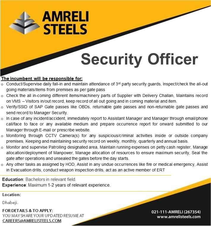 Amreli Steels Jobs Security Officer: