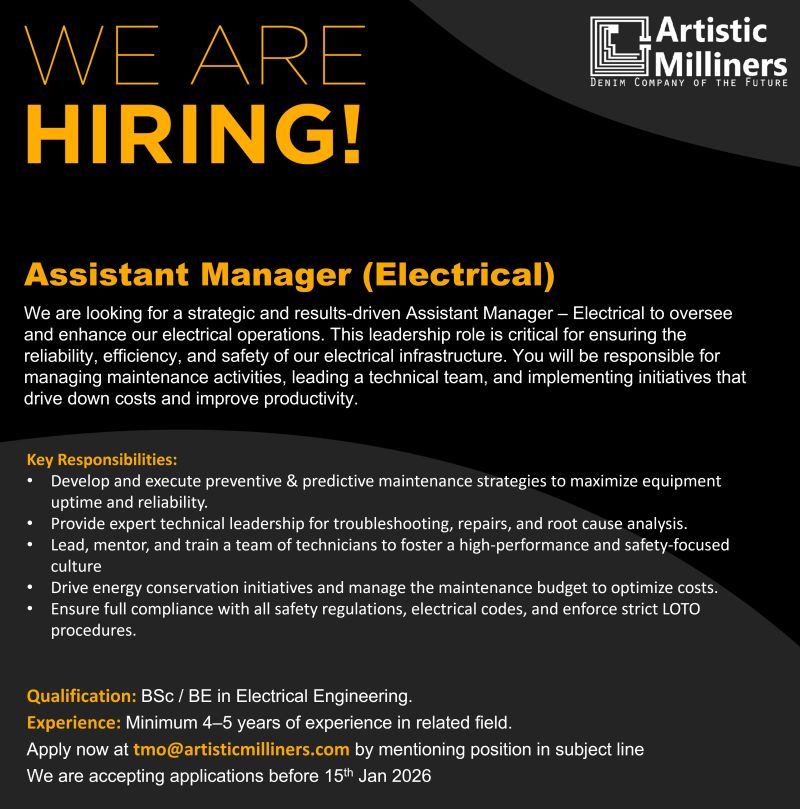 Artistic Milliners Pvt Ltd Jobs Assistant Manager Electrical