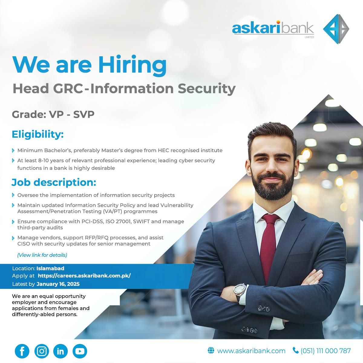 Askari Bank Limited Jobs Head GRC Information Security:
