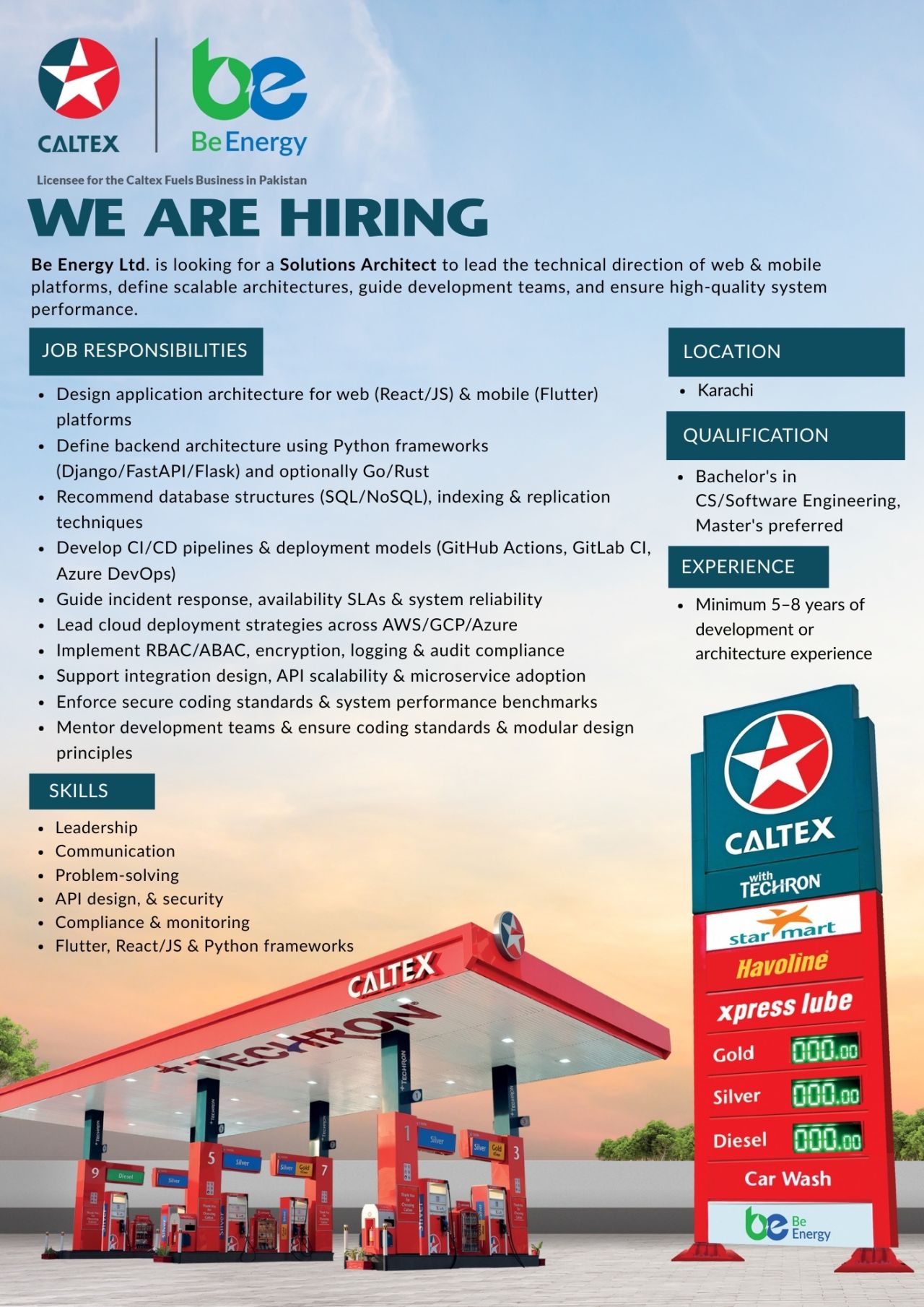 Be Energy is hiring experienced professionals for the following positions: