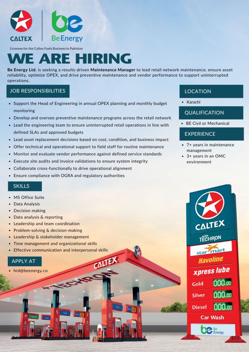Be Energy Limited Jobs Maintenance Manager: