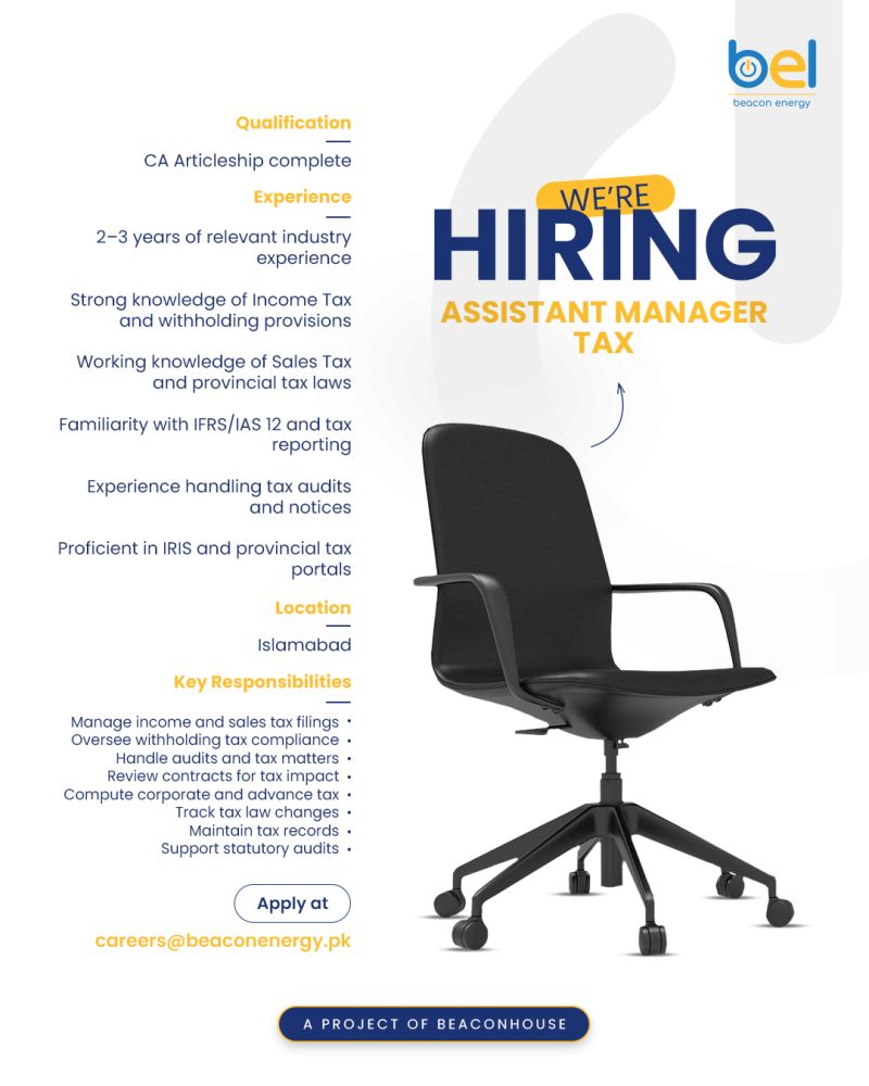 Beacon Energy is looking for a qualified tax professional to join our Islamabad team. If you have the relevant experience we’d like to hear from you!