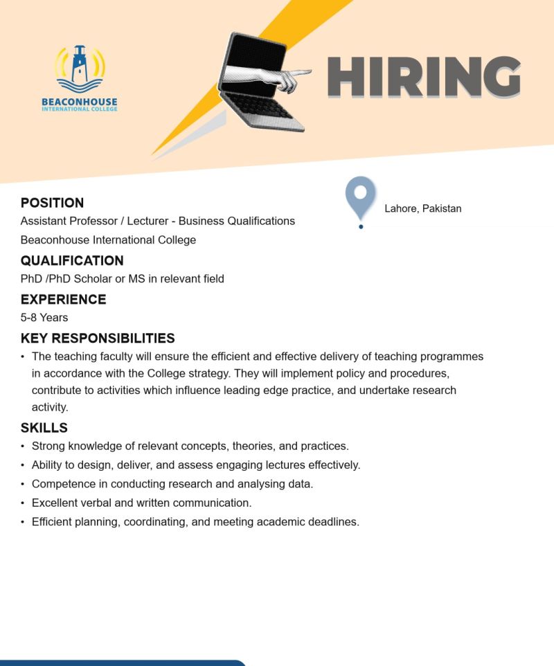 POSITION: Assistant Professor / Lecturer – Business Qualifications