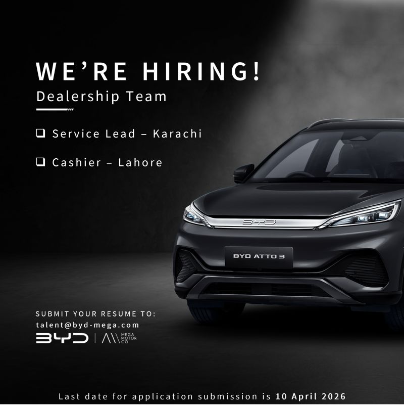 BYD Pakistan, Mega Motor Co, is looking for the following profiles for their dealership team: