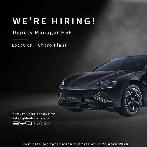 BYD Pakistan, Mega Motor Co., is seeking qualified candidates to join as Deputy Manager HSE at Gharo plant: