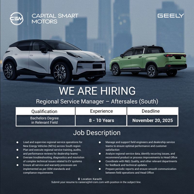 Capital Smart Motors is looking for a Regional Service Manager – Aftersales (South)