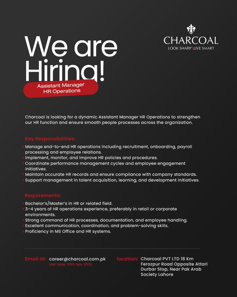 Charcoal is looking for a dynamic Assistant Manager HR Operations to strengthen our HR function and ensure smooth people processes across the organization.