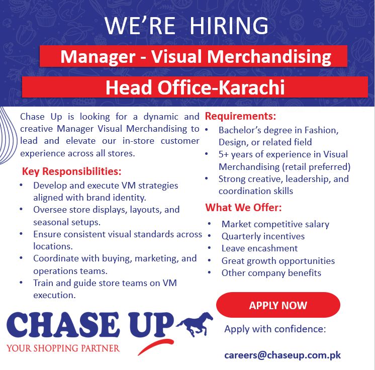 Chase Up is looking for a dynamic and creative Manager Visual Merchandising to lead and elevate our in-store customer experience across all stores.