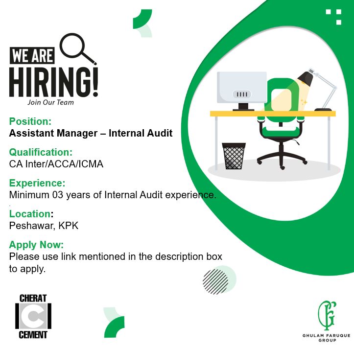 Cherat Cement Company Limited part of Ghulam Faruque Group is looking for the position of Assistant Manager Internal Audit at Peshawar Office. Interested candidates can apply through following link: Apply Online
