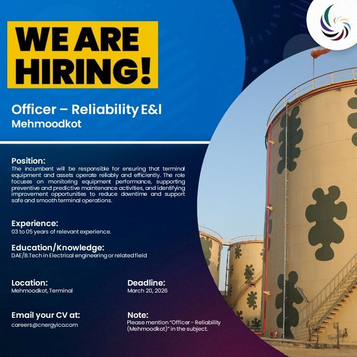 - Note: Please mention “Officer – Reliability (Mehmoodkot)” in the subject.