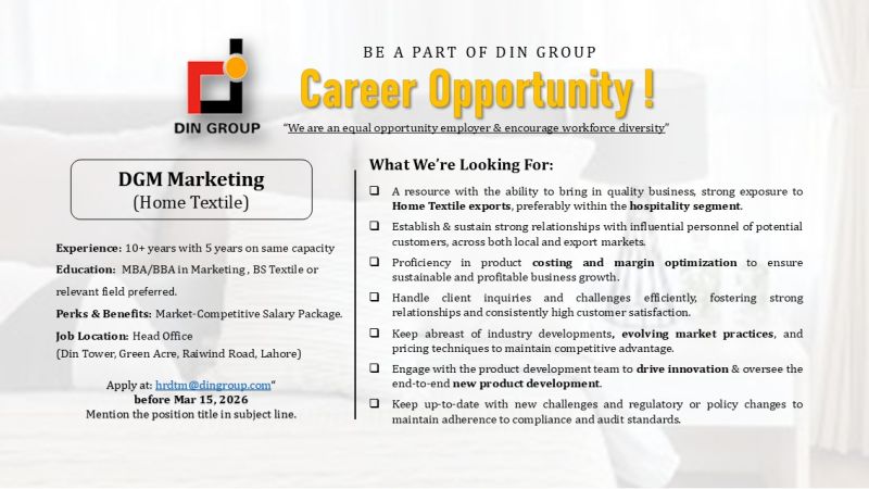 🌟 𝗣𝗼𝘀𝗶𝘁𝗶𝗼𝗻: DGM Marketing – Home Textile