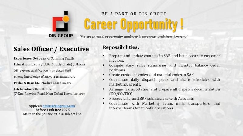 Join DIN Group and be part of a dynamic team driving excellence in the spinning textile industry.