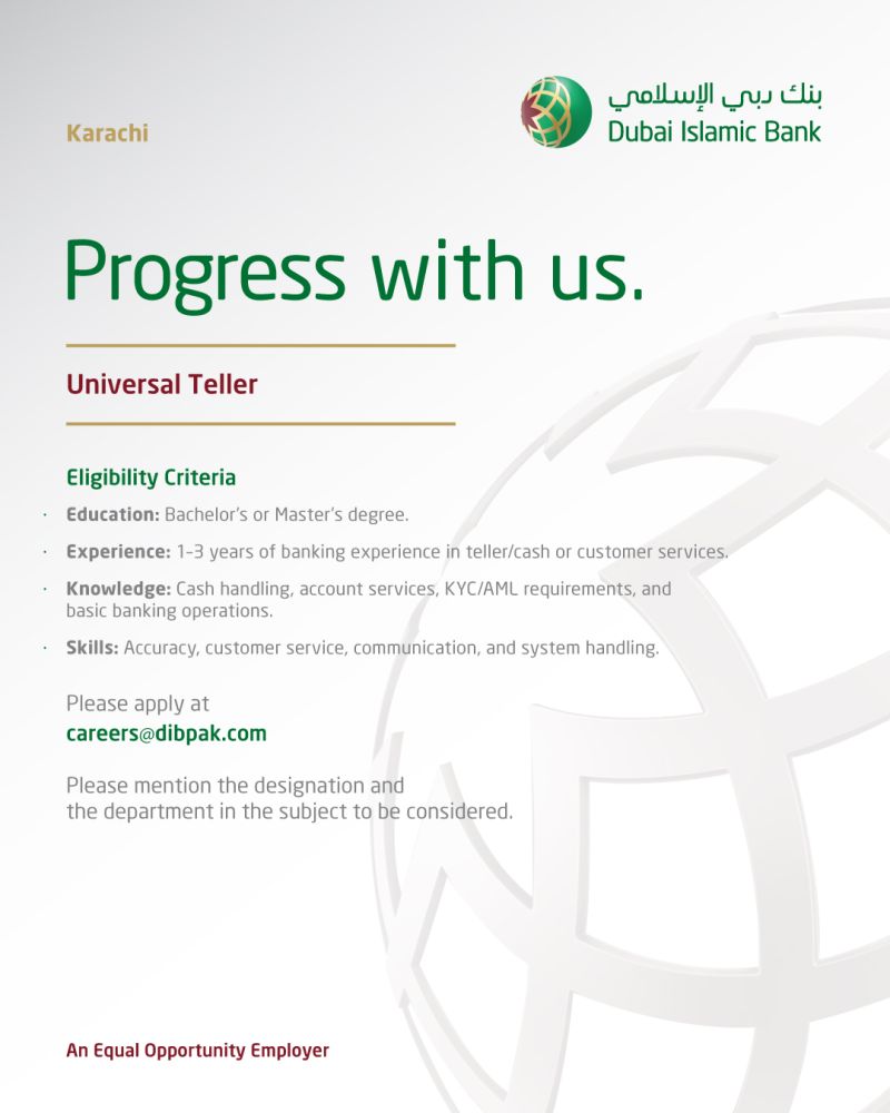 Dubai Islamic Bank Jobs Universal Teller  1