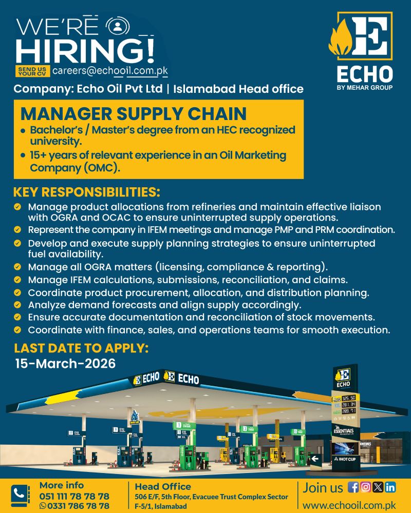 Echo Oil Pvt Ltd Jobs Manager Supply Chain