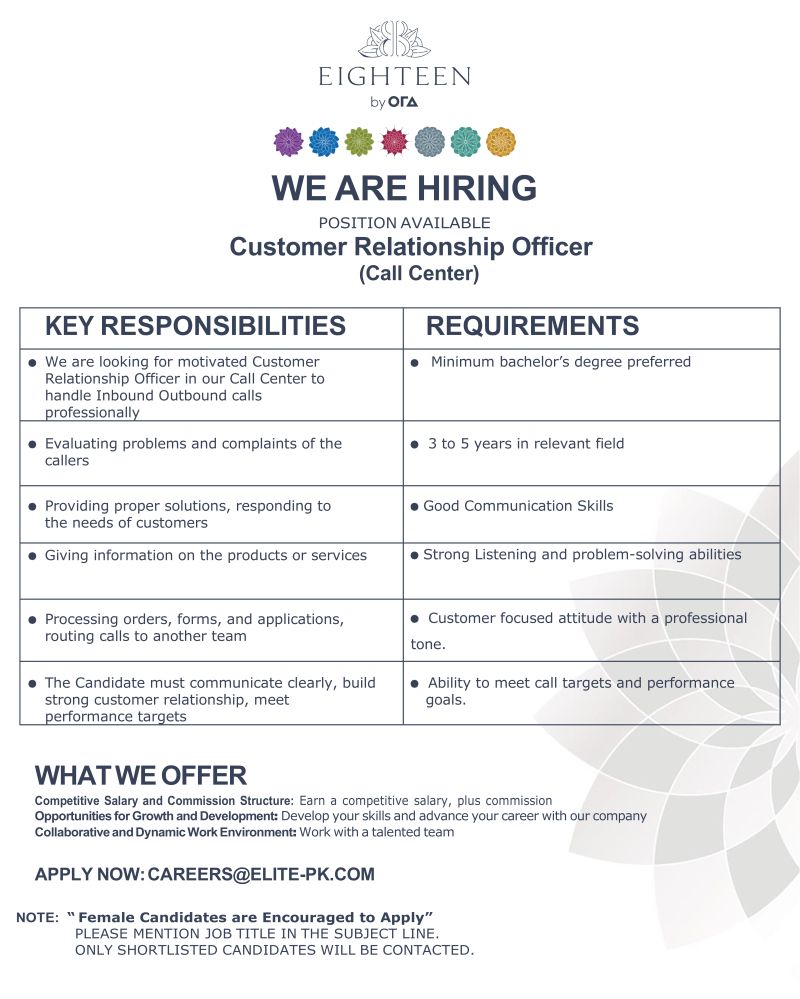 Eighteen Pvt Ltd Jobs Customer Relationship Officer