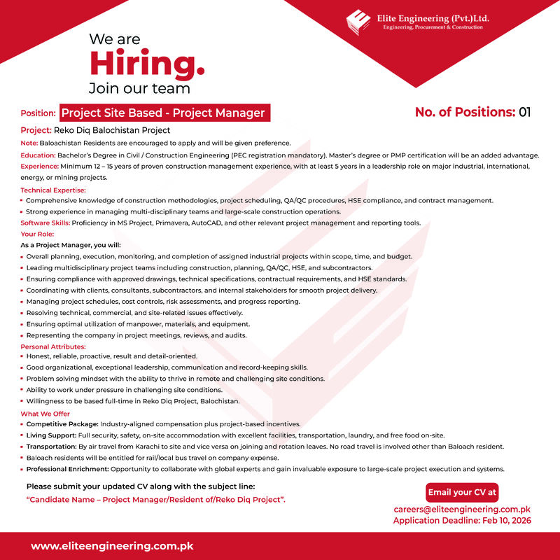 For Reko Diq, Balochistan Site.