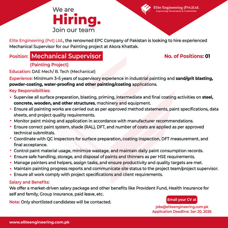 Elite Engineering Pvt Ltd Jobs Mechanical Supervisor 1
