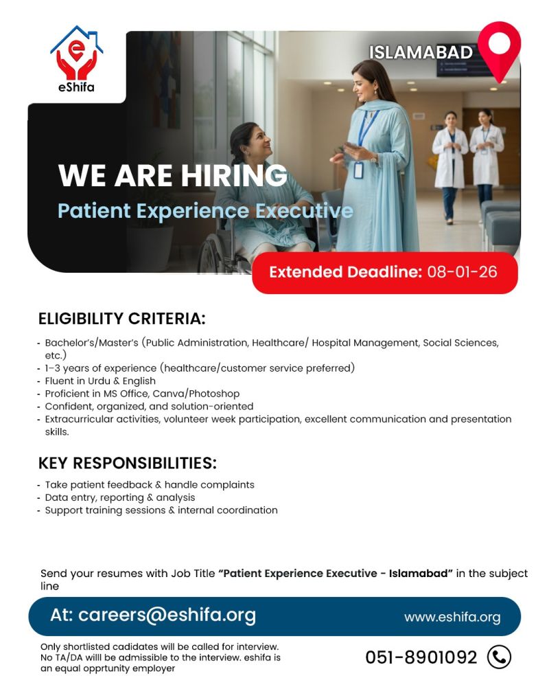 eShifa is looking for a passionate Patient Experience Executive to join our team. If you are customer-focused and committed to delivering exceptional healthcare experiences, we’d love to hear from you.