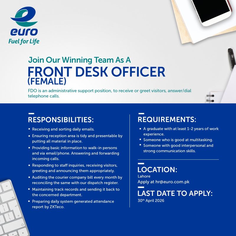 Join Our Winning Team As A FRONT DESK OFFICER (FEMALE)