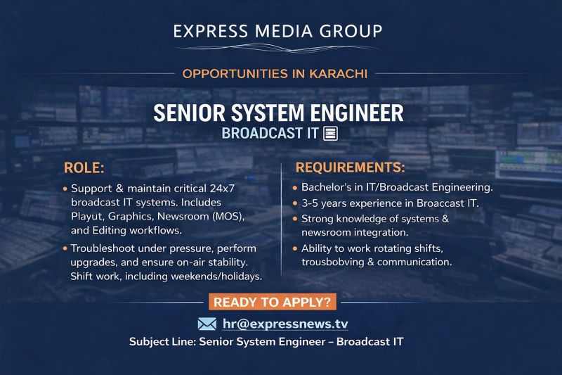 SENIOR / SYSTEM ENGINEER – BROADCAST IT | KARACHI