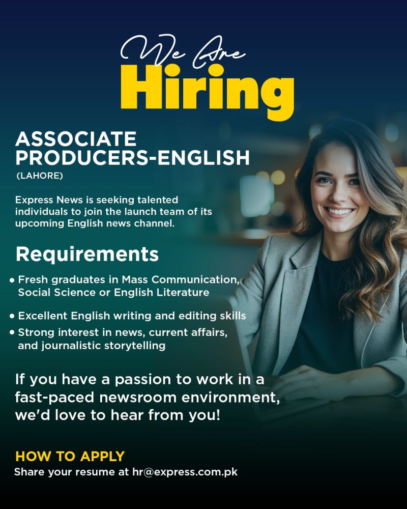 CAREER OPPORTUNITY: ASSOCIATE PRODUCERS – ENGLISH in LAHORE