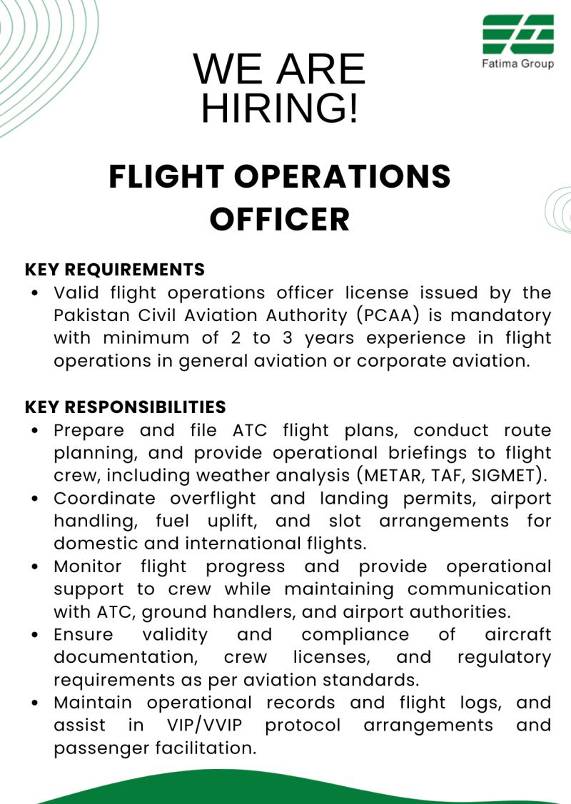 Fatima Group is hiring for Flight Operations Officer.