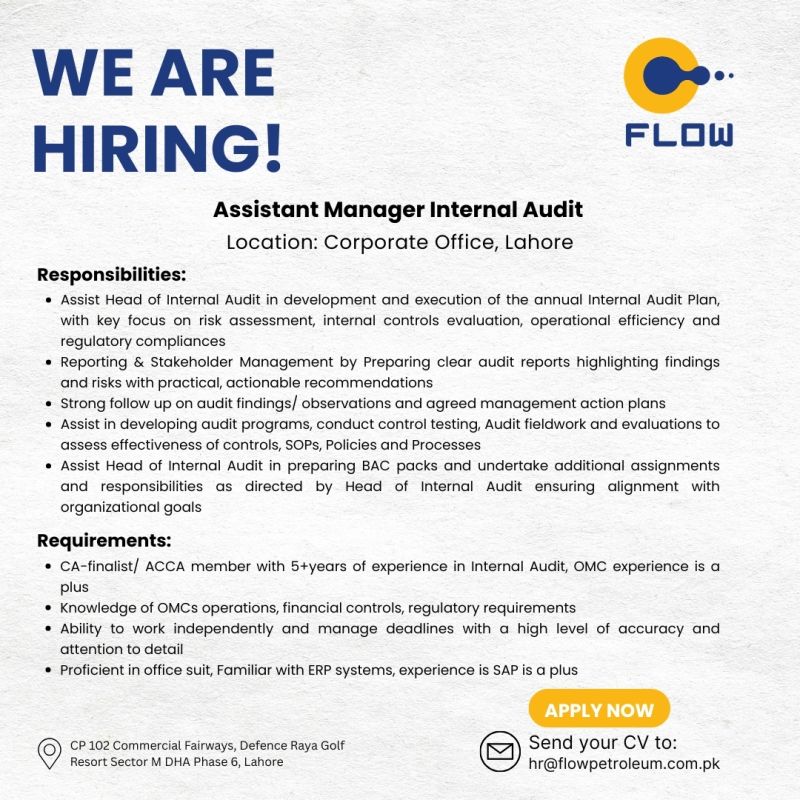 Flow Petroleum Pvt Ltd Jobs Assistant Manager Internal Audit 1