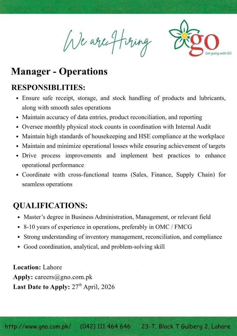 Gas & Oil Pakistan Ltd Jobs Manager Operations
