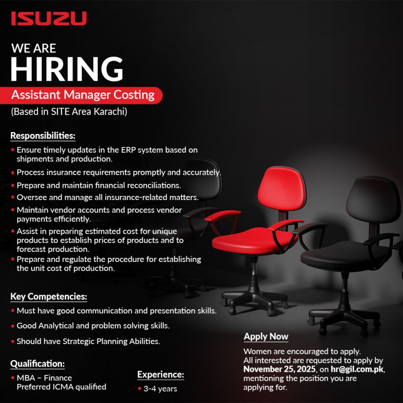 Ghandhara Industries Limited ISUZU Jobs Assistant Manager Costing: