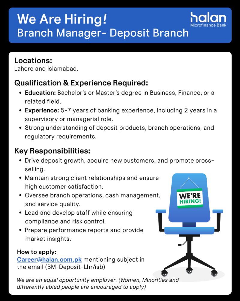 To apply, email your CV to [email protected] with the subject line “BM-Deposit-Lhr/Isb.”