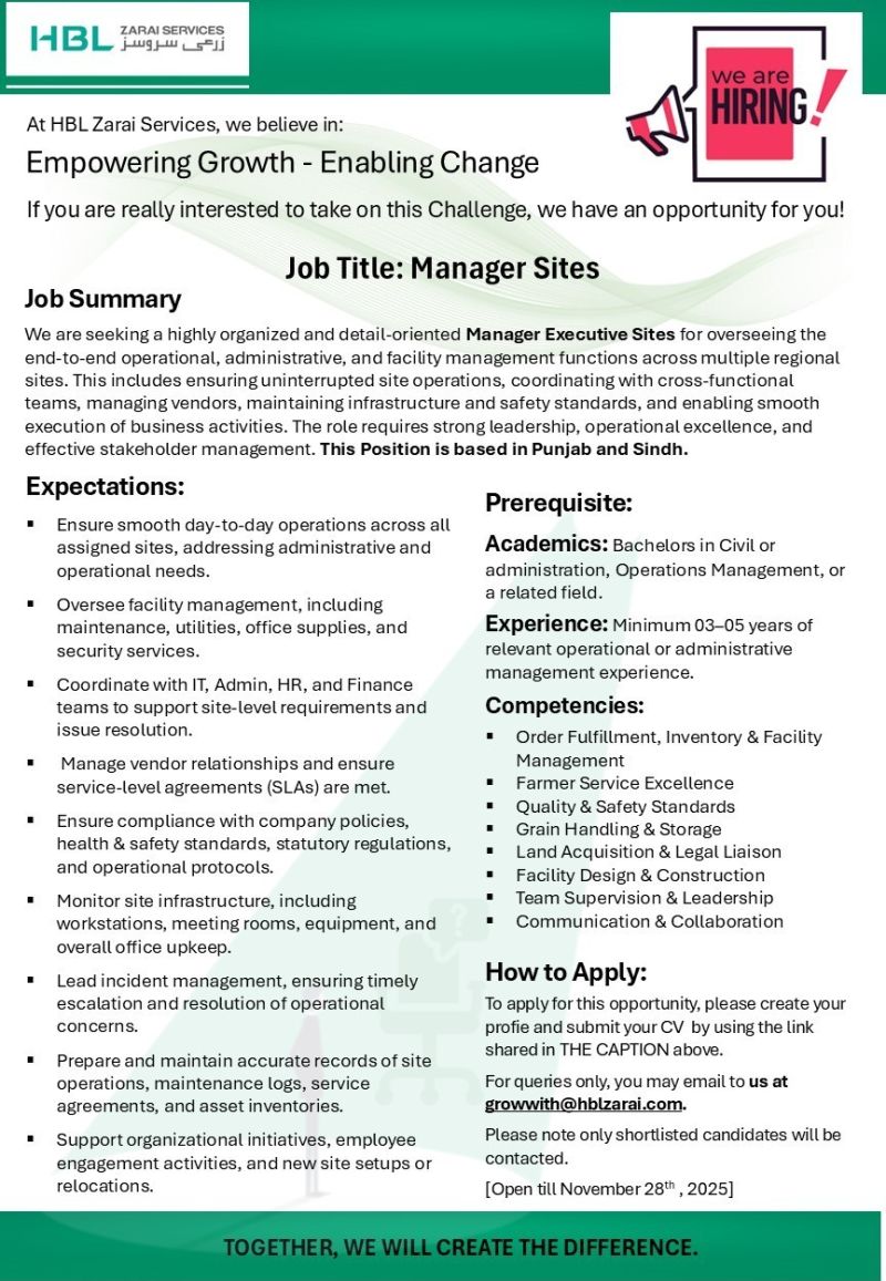 Exciting Career Opportunity at HBL Zarai Services Limited!