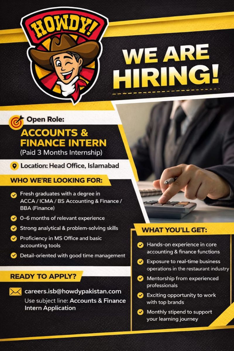 HOWDY Pakistan Jobs Accounts & Finance Intern:
