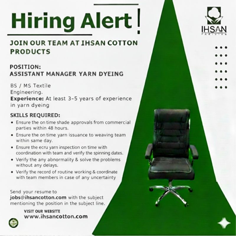 Ihsan Cotton Products Jobs Assistant Manager Yarn Dyeing 1