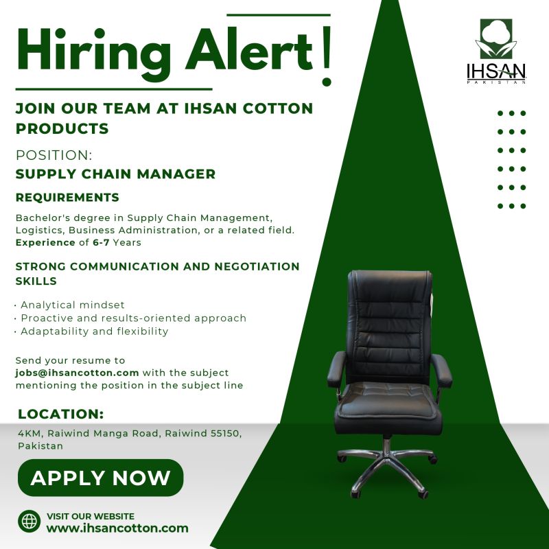 Ihsan Cotton Products Jobs Supply Chain Manager: