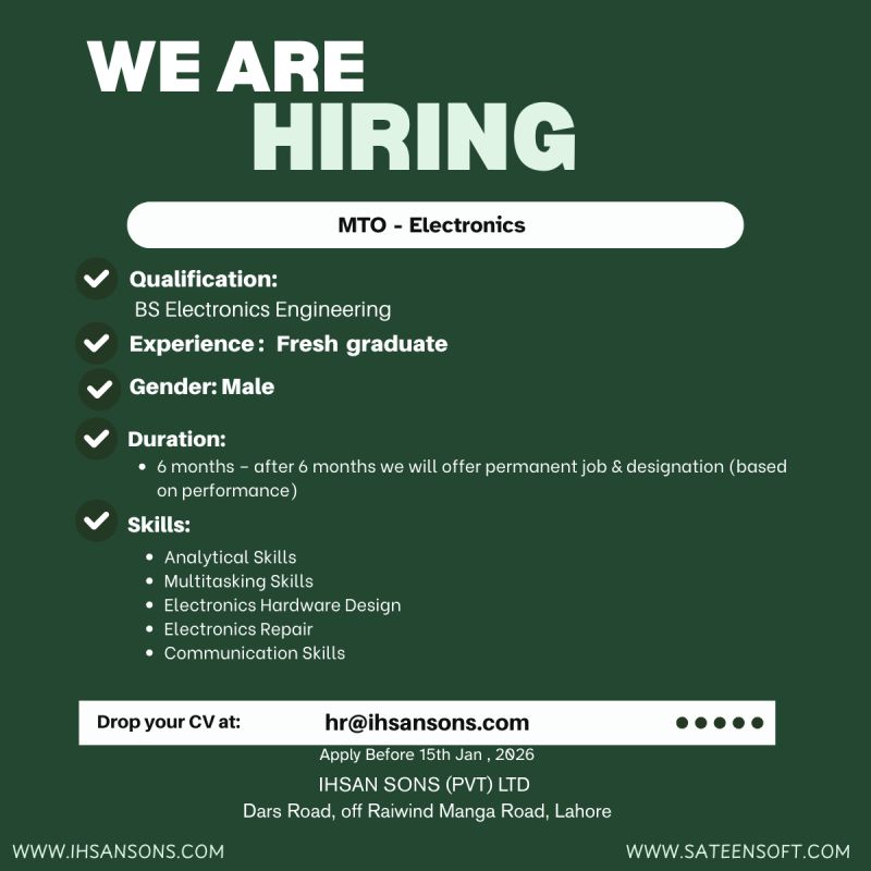 Ihsan Sons Pvt Ltd Jobs MTO Electronics :