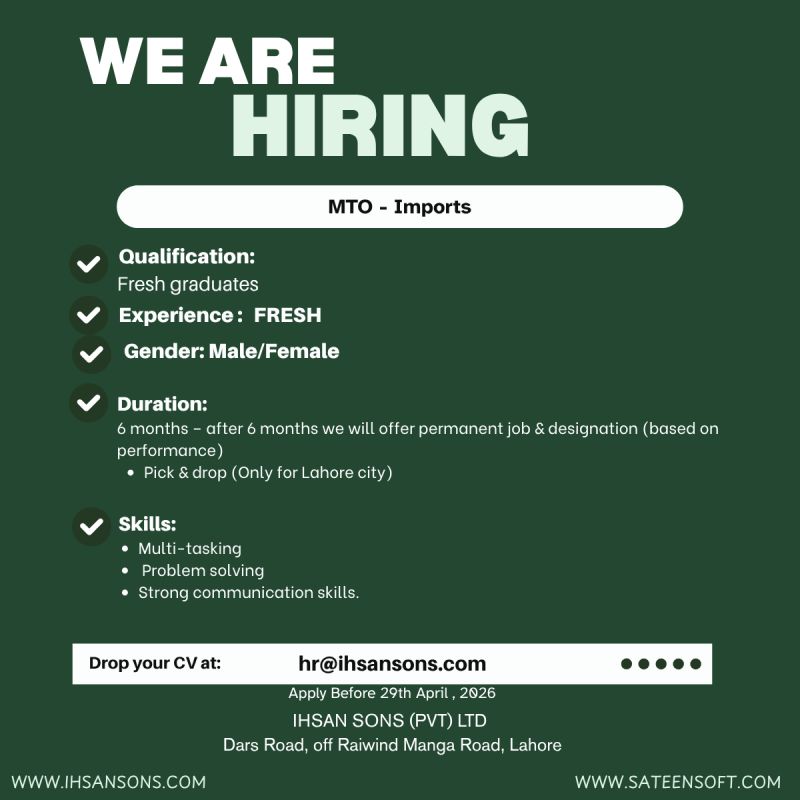 Ihsan Sons Pvt Ltd Jobs MTO Imports :